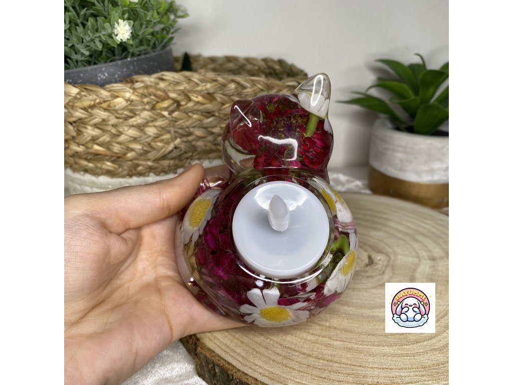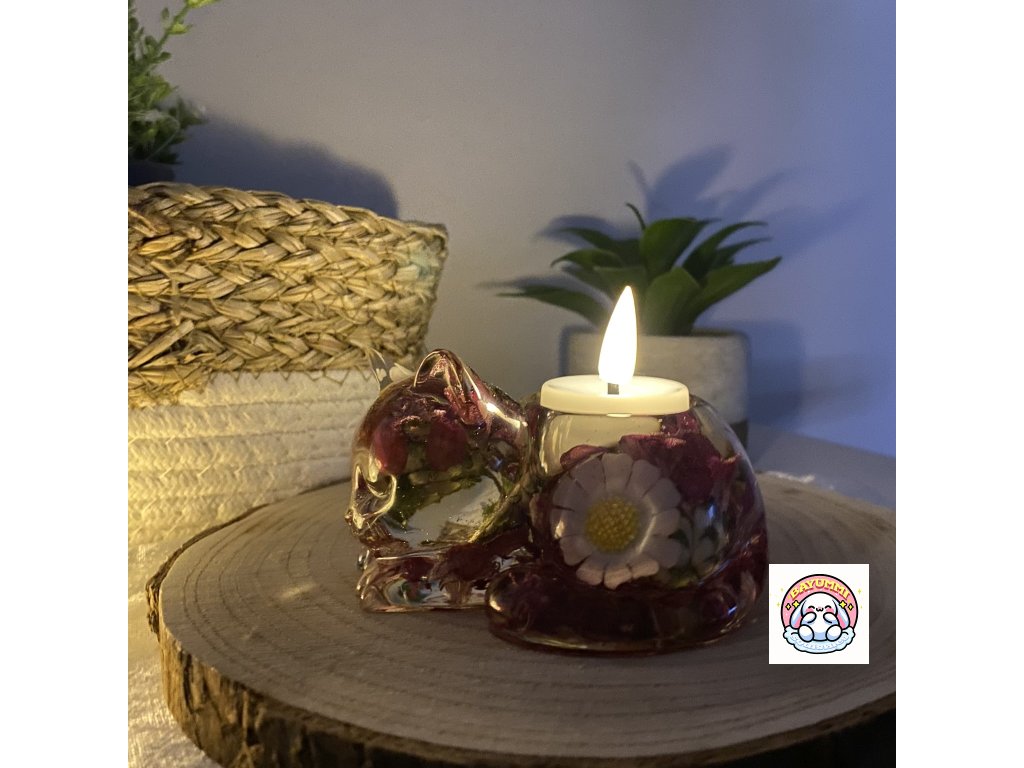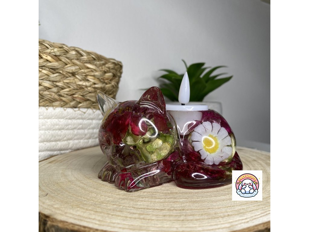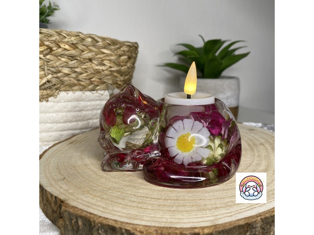 Dekorace a svícen Kočička s květy