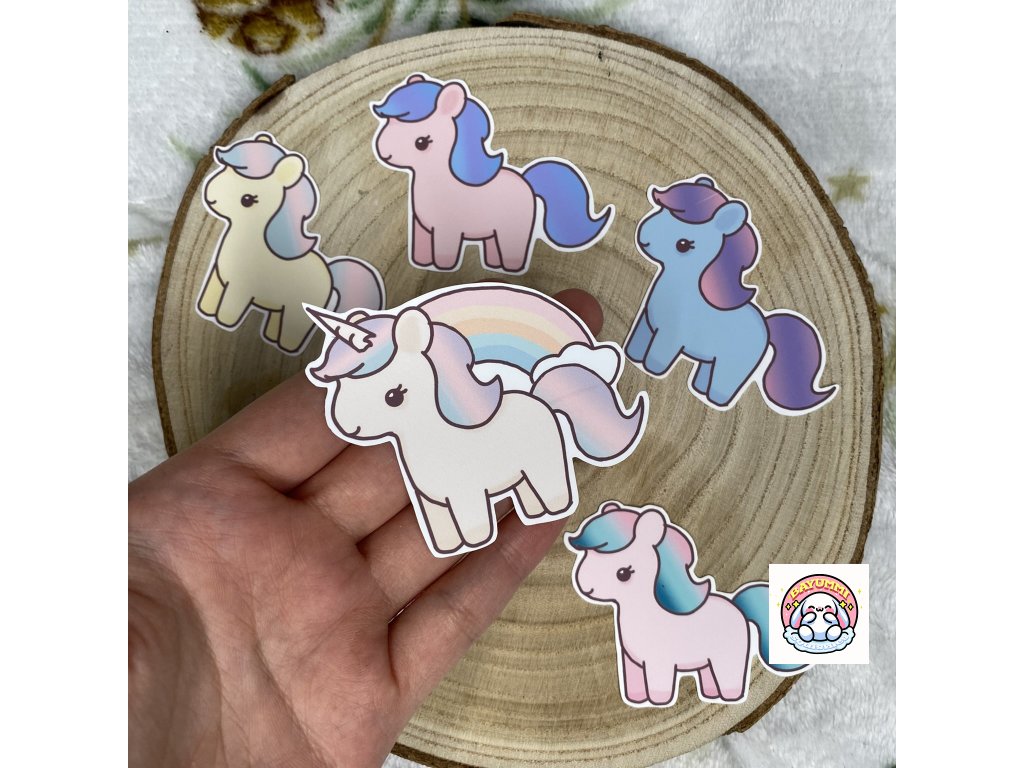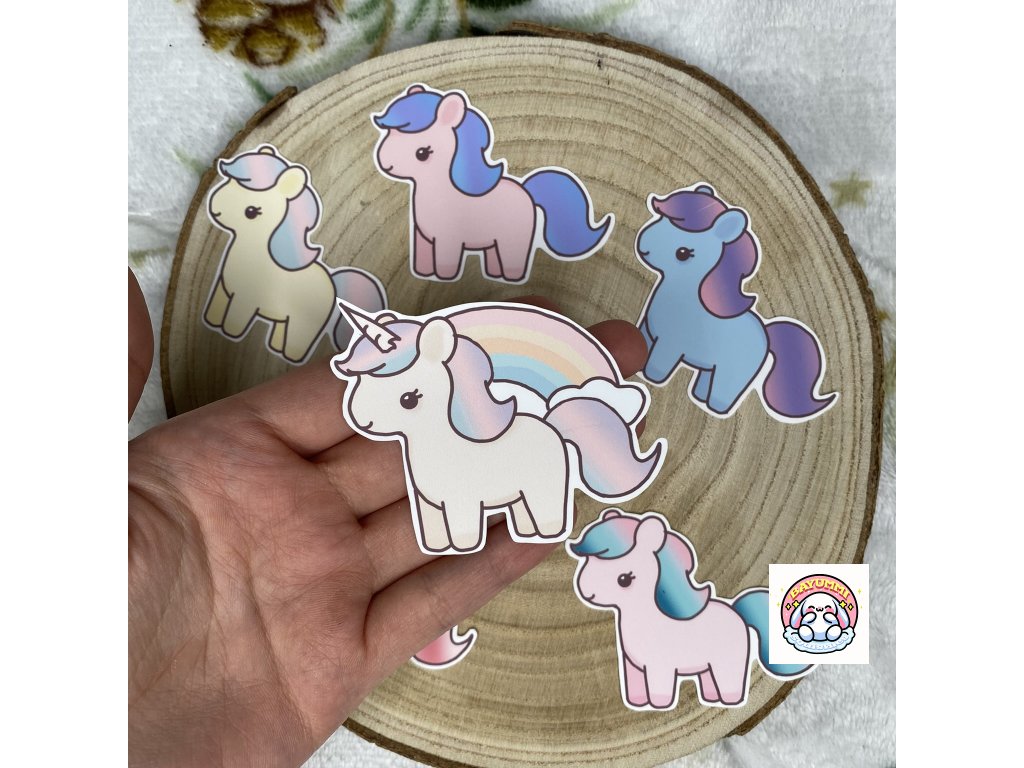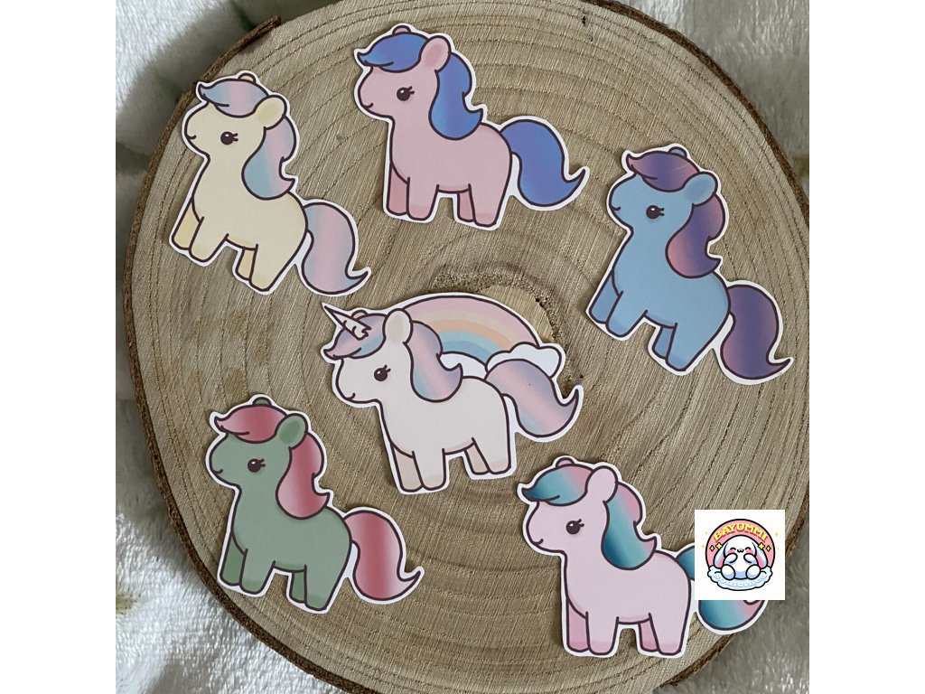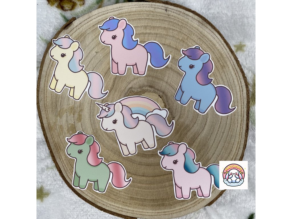 6 ks ručně vyrobených a ilustrovaných samolepek na motiv poníků.Velikost jedné samolepky: 6,5x5,3cm